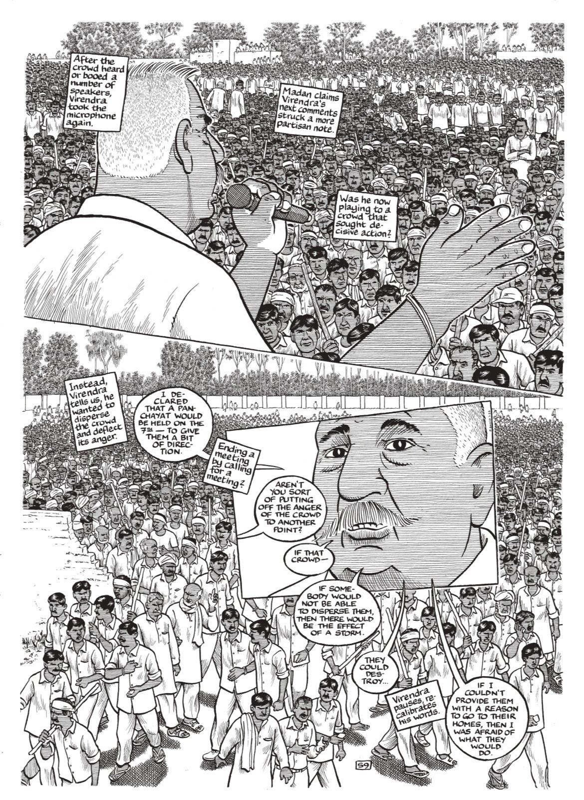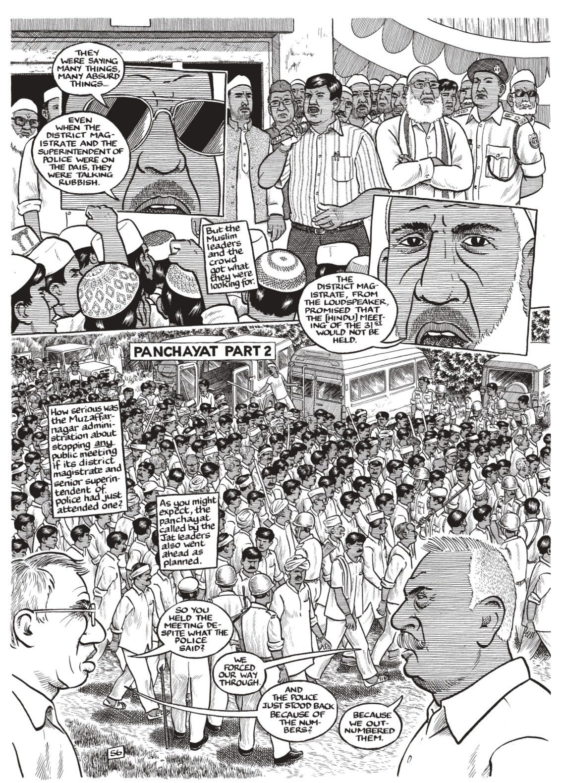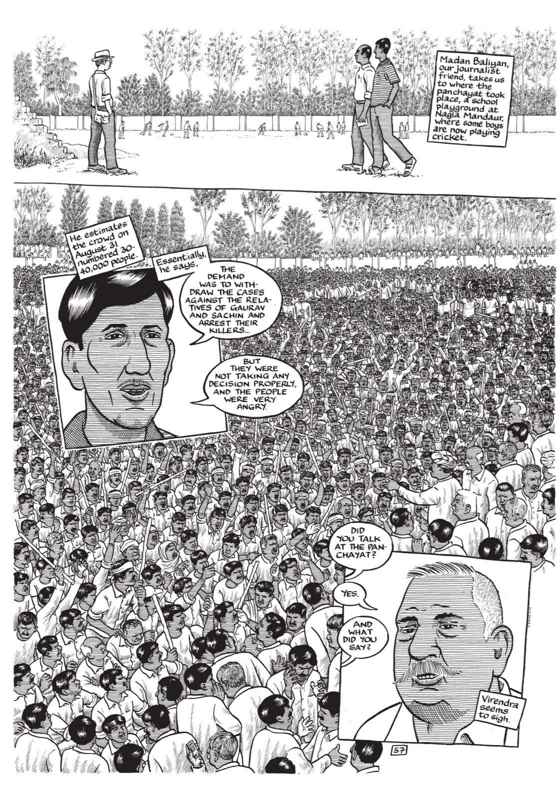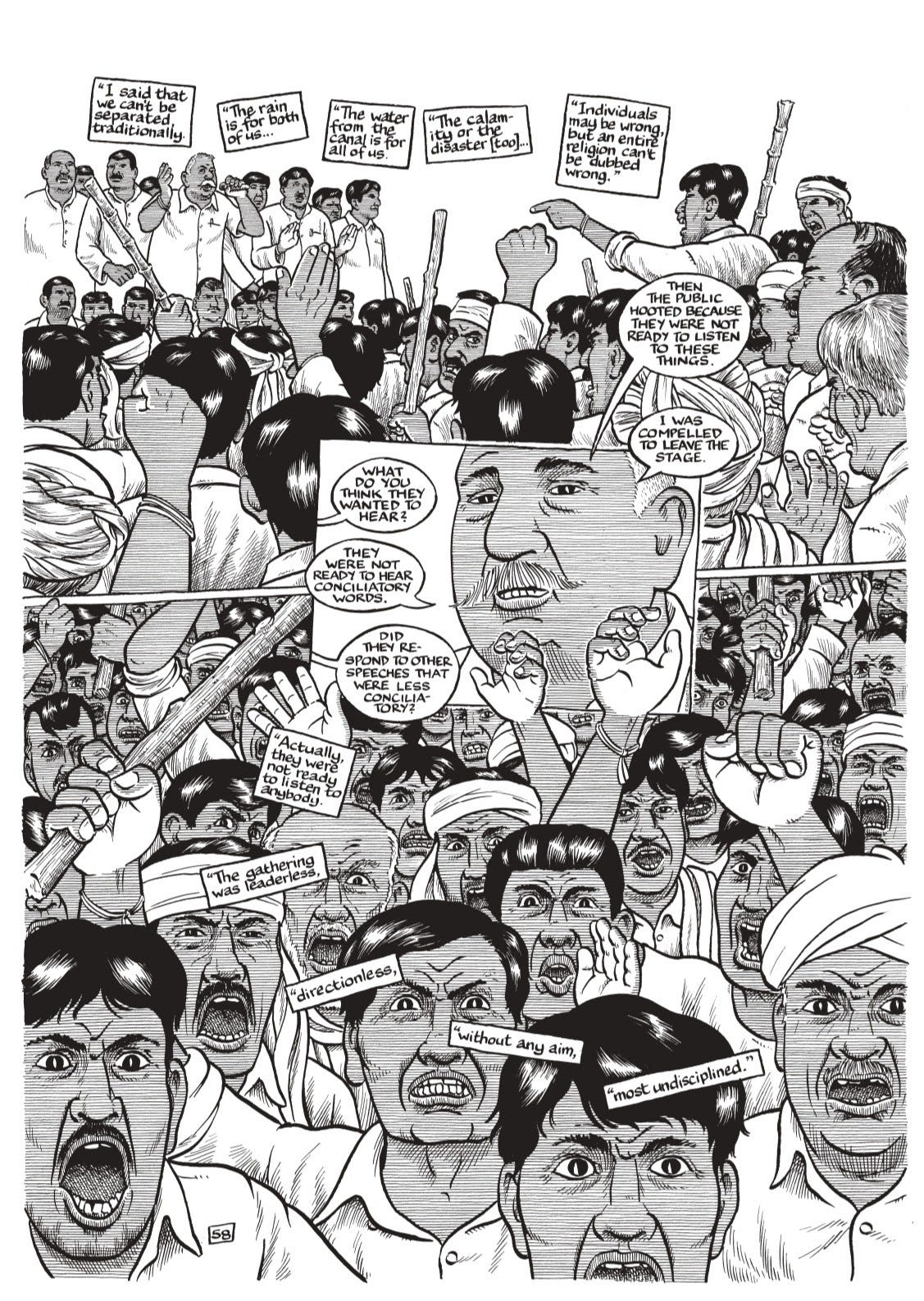 In his book, The Once and Future Riot, Sacco sets out to document the genesis and the aftermath of Hindu-Muslim riots in the small town of Muzaffarnagar in India, which led to deaths and displacement.