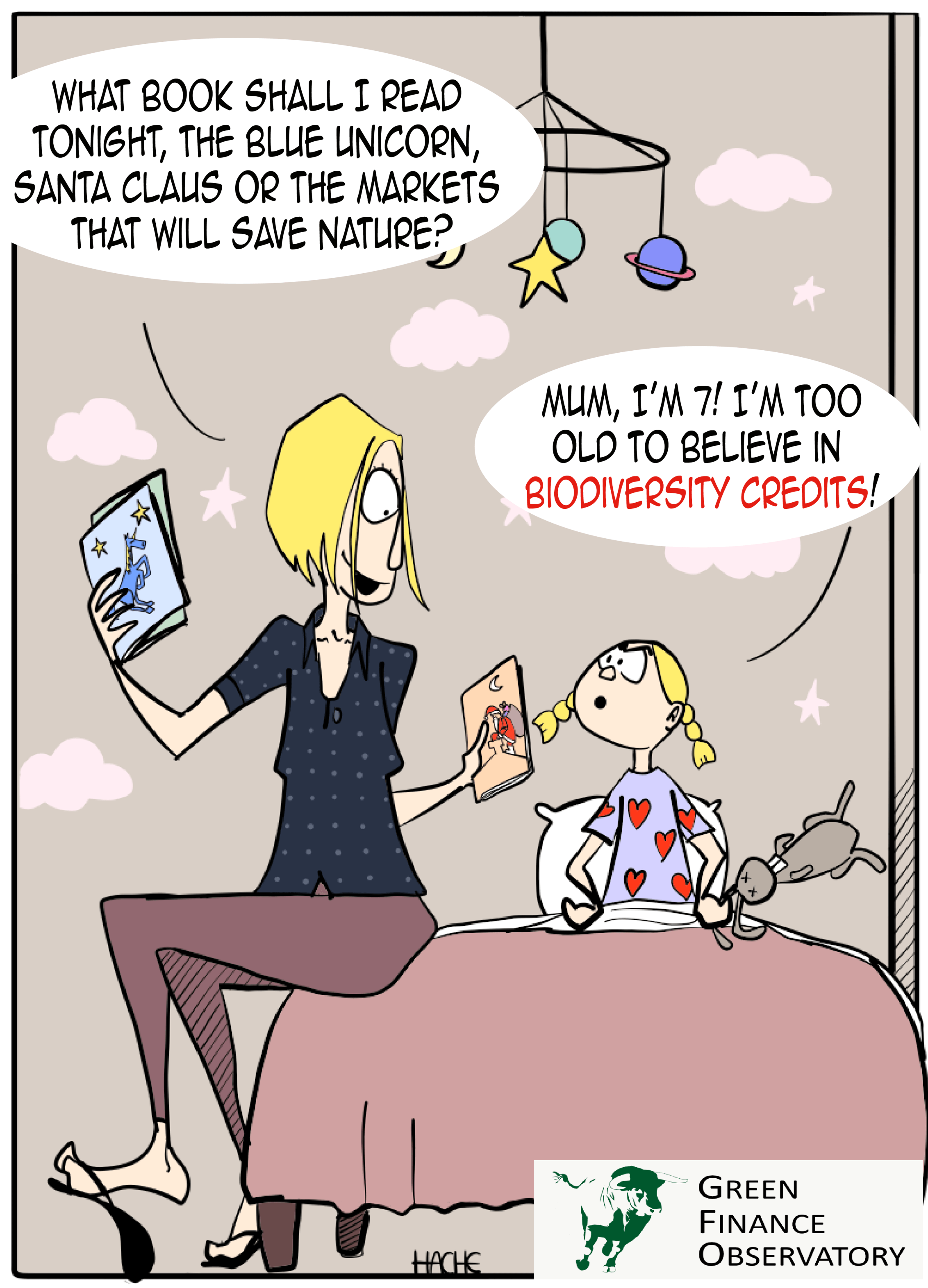 Find more of Hache’s cartoons at the Green Finance Observatory, including this excellent comic book The New Nature Markets Explained to My Grandmother.